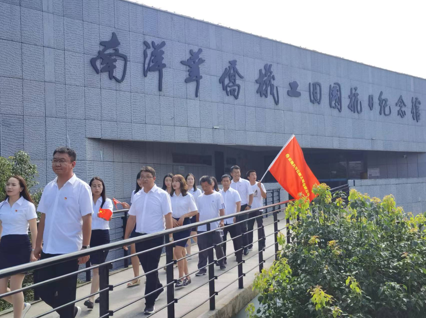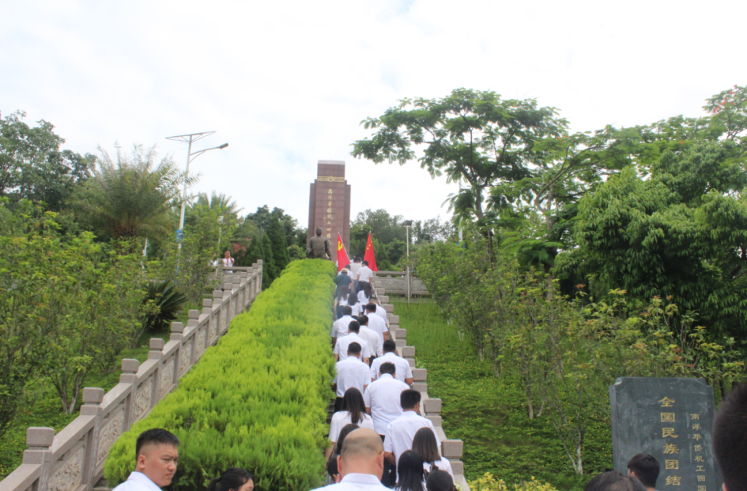 火紅的七月,驕陽似火。七月一日一大早,踏著清晨的朝陽,參加主題黨日活動的三個黨支部的全體黨員同志和入黨積極分子,從瑞弄工程項目部駐地出發(fā),汽車沿著通往畹町的盤山公路,穿行在熱帶雨林中,向著南洋華僑機工紀念公園進發(fā),經過近一個小時的車乘到達了主題黨日活動的第一站——南洋華僑機工紀念公園。黨員們來到了紀念公園正中央,看到了華僑領袖“陳嘉賡”雕像坐落在四方臺上,眺望遠方的畹町大橋和滇緬公路。拾階而上,黨員們列隊佇立在公園中心的紀念碑前,帶著無比虔誠與莊重,向紀念碑獻上鮮花,向革命先輩們鞠躬致敬。走進紀念館參觀學習,紀念館里,那一幅幅照片、一件件實物,都無聲地訴說著歷史的真相。大家對這一段歷史有了更深刻的了解,被革命先輩和愛國華僑的愛國熱情深深感染。認識到了戰(zhàn)爭的殘酷性以及南洋機工不怕艱辛、英勇抗日的大無畏精神,接受了一次心靈的洗禮,增強了黨員們自身的歷史使命感和責任感。