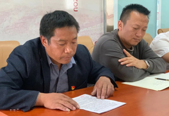 接著,全體與會黨員高舉右拳,在支部書記倪建林的領誓下,重溫入黨誓詞,“我志愿加入中國共產黨,擁護黨的綱領,遵守黨的章程……隨時準備為黨和人民犧牲一切,永不叛黨”,錚錚誓言、初心不變,立黨為公,勇往直前!