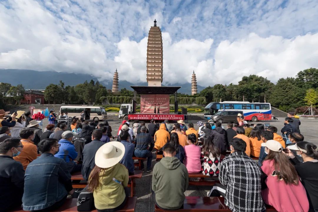 為深入學習宣傳貫徹黨的二十大精神,進一步鑄牢中華民族共同體意識,由云南省文化和旅游廳、云南省財政廳主辦,云南省話劇院演出,大理州企業家協會副會長單位——大理旅游集團承辦的“同心共圓中國夢 蒼洱處處石榴紅”民族團結進步文藝進景區活動在國家5A級景區大理崇圣寺三塔文化旅游區、國家4A級景區天龍八部影視城經過2天3場精彩的演出,正式拉開帷幕。演出活動得到了大理州民族宗教事務委員會的大力支持和精心指導。